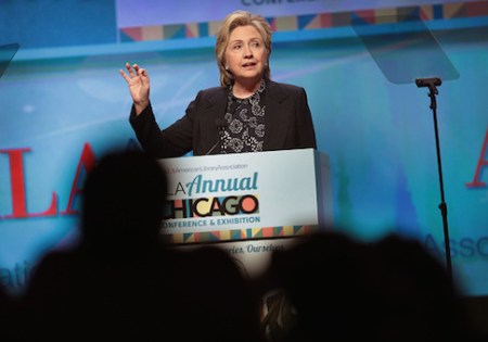 Former Secretary of State Hillary Clinton speaks during the Book Expo event in New York on June 1, 2017. (Associated Press)