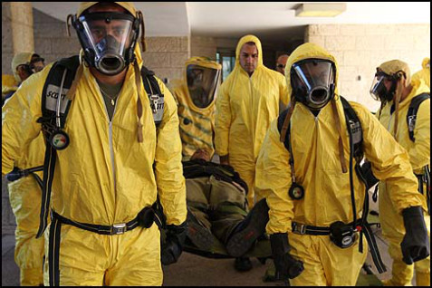 Israeli’s Border Police training for chemical, biological, and nuclear attacks. Photo Credit: Nati Shohat / Flash 90