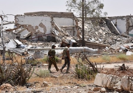 Syrian regime and pro-regime forces inspect an area recently recaptured from the Islamic State near Aleppo / Getty Images