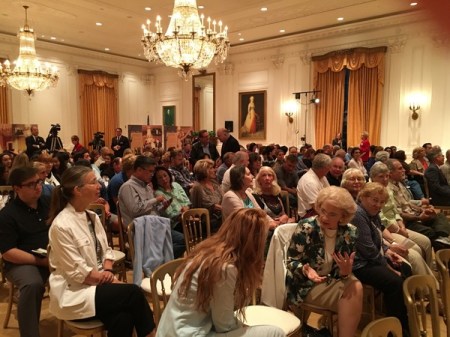 Don’t think there hasn’t been wild interest on this side of the hemisphere, too. Iranian-Americans on the West Coast flooded an author’s event held at the Nixon Library last year in September, shortly after the publication of Cooper’s book. It was standing room only, and it’s important to note that the Nixon Library is not all that close to where most Iranian-Americans live in the Los Angeles area, which is Beverly Hills and its outskirts. The Nixon Library is about an hour’s drive away from that in Yorba Linda, Calif., and it’s an arduous drive, through a truck-convoy-route highway. Here is a photo I took of how the audience that night looked: