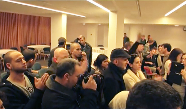 1069Palestinian “anti-normalization” activists disrupt an unofficial Israeli-Palestinian peace conference last year, in Jerusalem’s Ambassador Hotel.