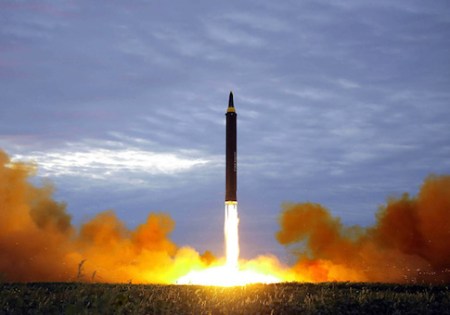North Korea’s intermediate-range strategic ballistic rocket Hwasong-12 lifts off / Getty Images