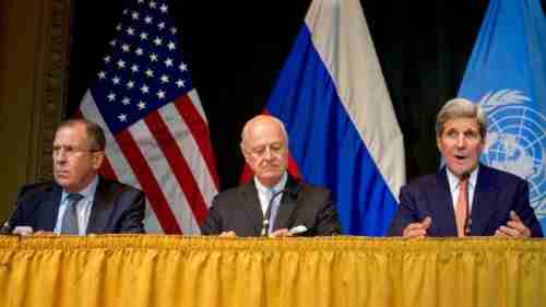 g151031bL-R: Sergei Lavrov, United Nations Special Envoy for Syria Staffan de Mistura, and John Kerry in Vienna on Friday (state.gov)