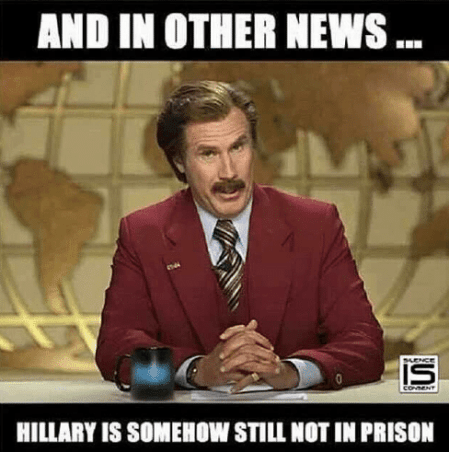 Clinton knows that if the system worked today the way it did 40 years ago, she would have been in prison years ago and never could have even run for president in 2016. As the calendar moved from 2017 to 2018, Hillary, surrounded by her yes men and yes women, raised her glass of champagne and said, “Help me celebrate with a toast to corruption! Without it, I wouldn’t be where I am today.”