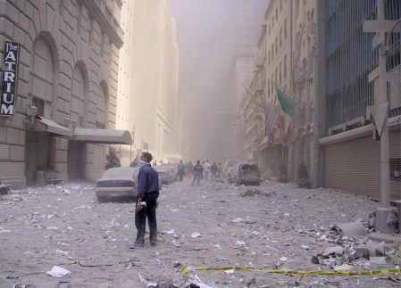 At 8:45 am on September 11, 2001, Muslim terrorists hijacked American Airlines Boeing 767 loaded with 20,000 gallons of jet fuel and crashed into the north tower of the World Trade Center in New York City, instantly killing hundreds of people and trapping hundreds more on the building’s higher floors.