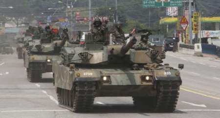 South Korean army K-1 tanks move during the annual exercise in Paju, South Korea, near the border with North Korea, on July 5, 2017. (AP Photo/Ahn Young-joon)