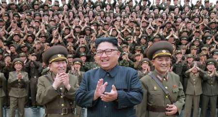 In this Aug. 14, 2017, photo distributed Tuesday, Aug. 15, 2017, by the North Korean government, North Korean leader Kim Jong Un acknowledges a welcome from the military officers during his visit to Korean People’s Army’s Strategic Forces in North Korea. The Korean Central News Agency said Tuesday that Kim during an inspection of the KPA’s Strategic Forces praised the military for drawing up a “close and careful” plan. Kim said he will give order for the missile test if the United States continues its “extremely dangerous actions” on the Korean Peninsula. Independent journalists were not given access to cover the event depicted in this image. (Korean Central News Agency/Korea News Service via AP)