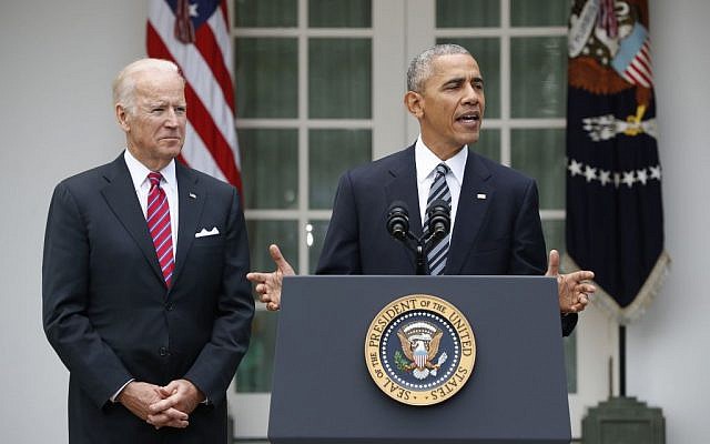 President Barack Obama, accompanied by Vice President Joe Biden, speaks Wednesday, Nov. 9, 2016, in the Rose Garden of the White House in Washington. (AP/Pablo Martinez Monsivais)