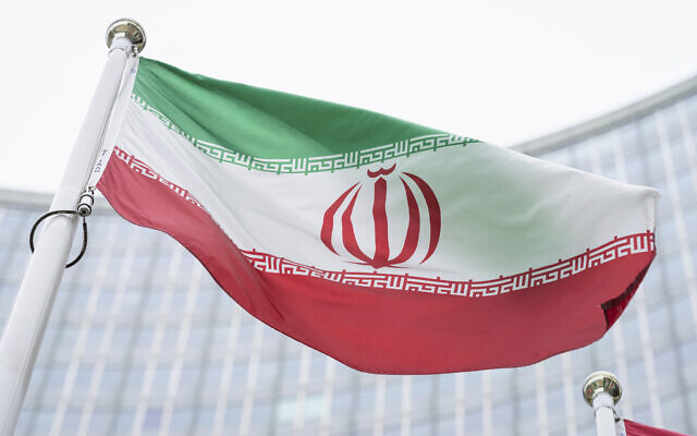 The flag of Iran is seen in front of the Headquarters of the International Atomic Energy Agency, in Vienna, Austria, May 24, 2021. (Florian Schroetter/AP)