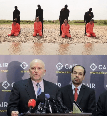 This “contrast” between the barbarity of the Islamic State and the suit-wearing jihadis of the Muslim Brotherhood’s U.S. Council of Muslim Organizations (USCMO), Islamic Society of North America (ISNA), Islamic Circle of North America (ICNA), Hamas doing business as the Council on American Islamic Relations (CAIR), Muslim American Society (MAS), Muslim Students Association (MSA), Muslim Advocates, and all the others, is exactly what the Islamic Movement is after.