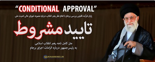 Khamenei’s letter to Rohani with his conditions for the execution of the JCPOA – the publication of which coincided with the days of the Ashura that are of vital religious and national significance in Iran and symbolize steadfastness against the forces of evil – was explicitly termed “conditional approval.” It was labeled thus in red letters, as posted on Khamenei’s website in Persian, tweeted from his Twitter account and posted on his Facebook page in English, and also published in English by the official Islamic Republic of Iran Broadcasting authority IRIB.